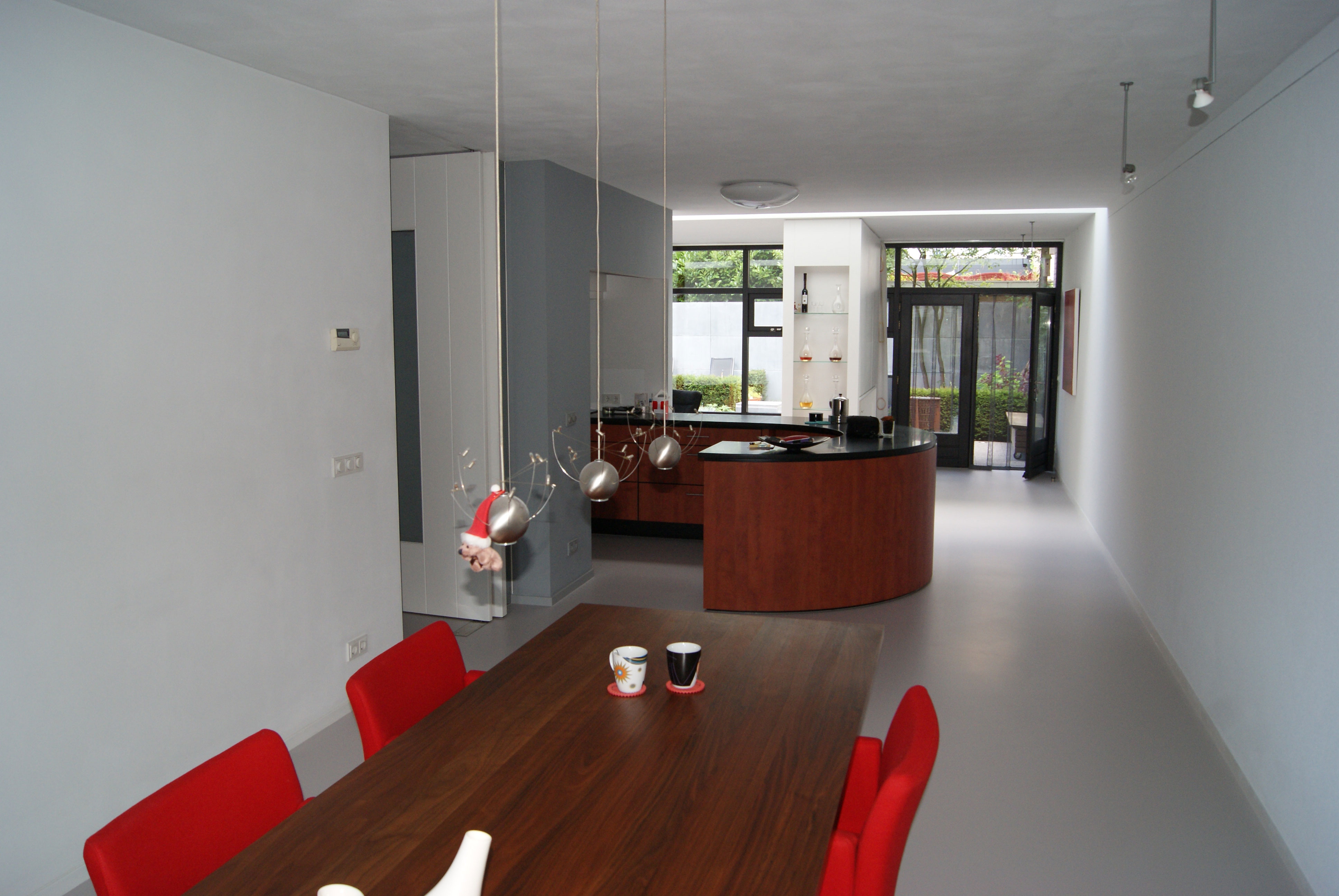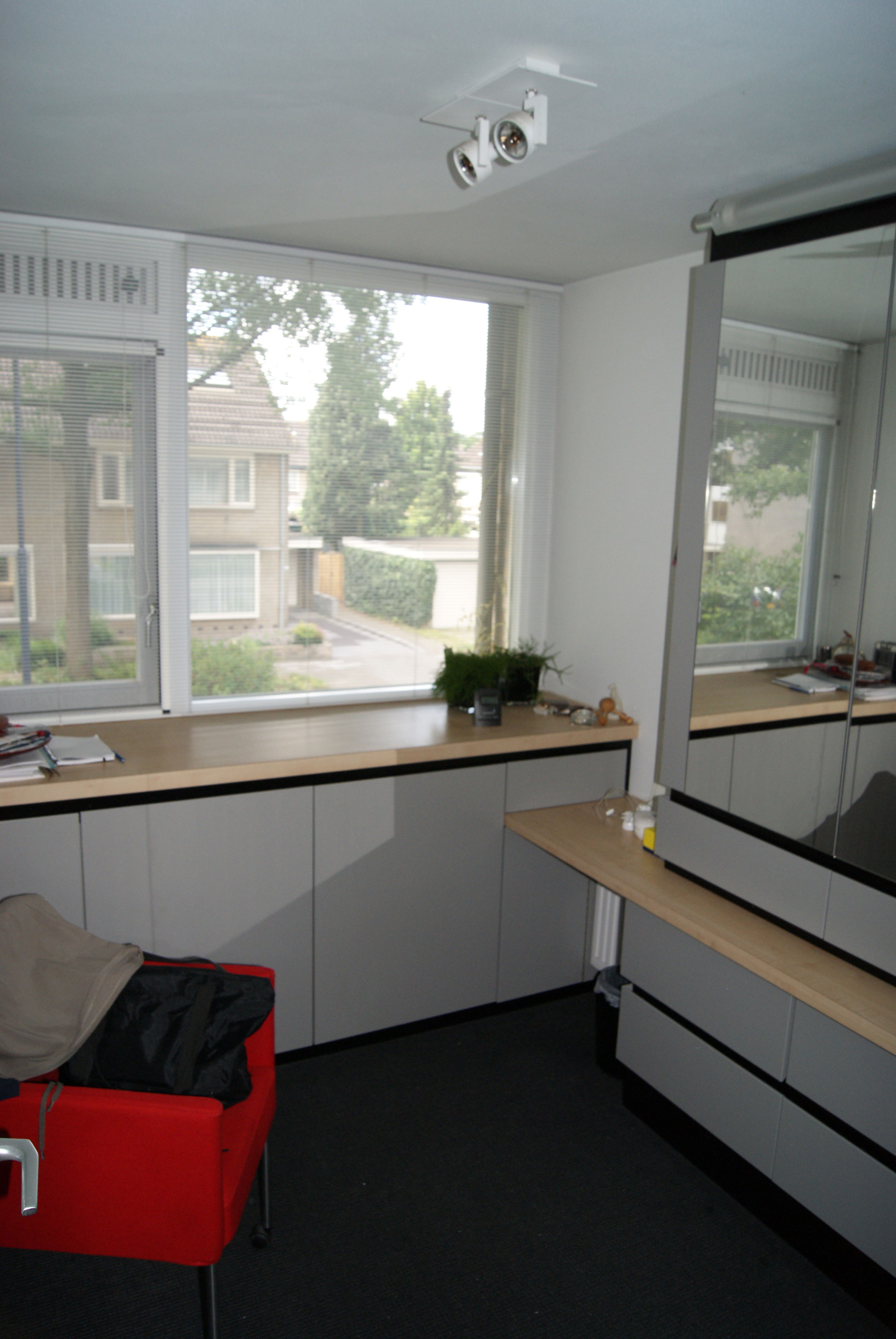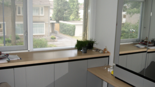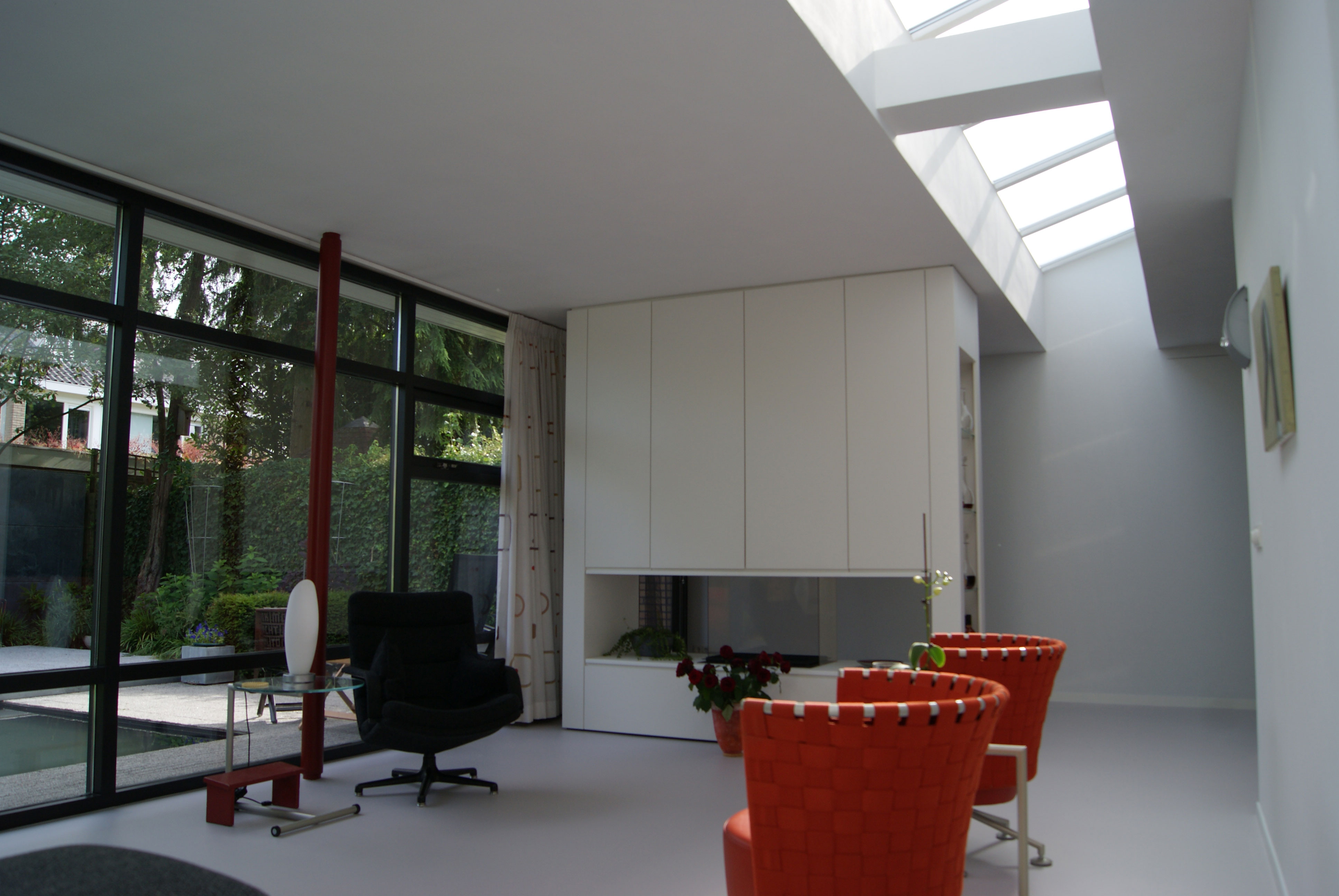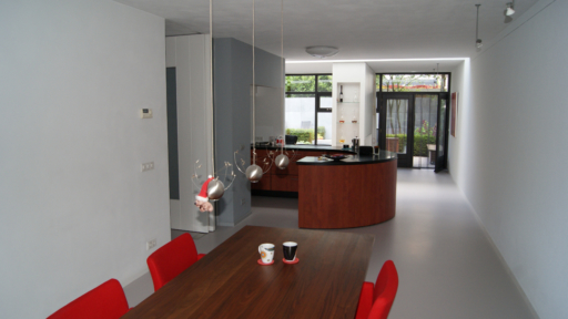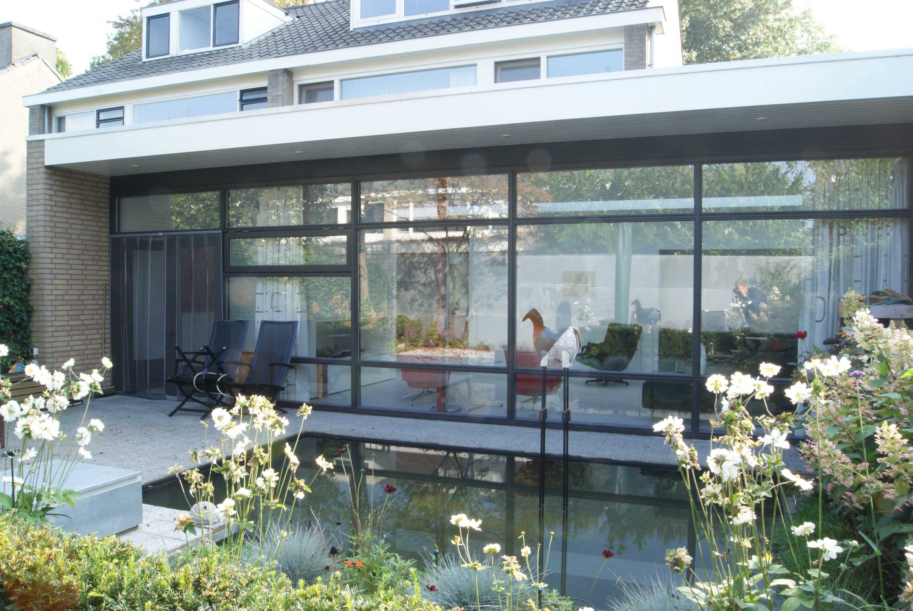 Het betreft hier de verbouwing van een woning uit 1970, een woning opgedeeld in een woon- en servicebeuk. De bestaande garage is gesloopt en bij de woning getrokken. Aan de achterzijde is de woning vergroot met een zitkamer. De entree met garderobe, toilet en keuken is dwarsgeplaatst en vormt zodoende een duidelijke scheiding in de orientatie. De eetkamer met zicht op de voorzijde, de straat en de zitkamer met zicht op de tuin.