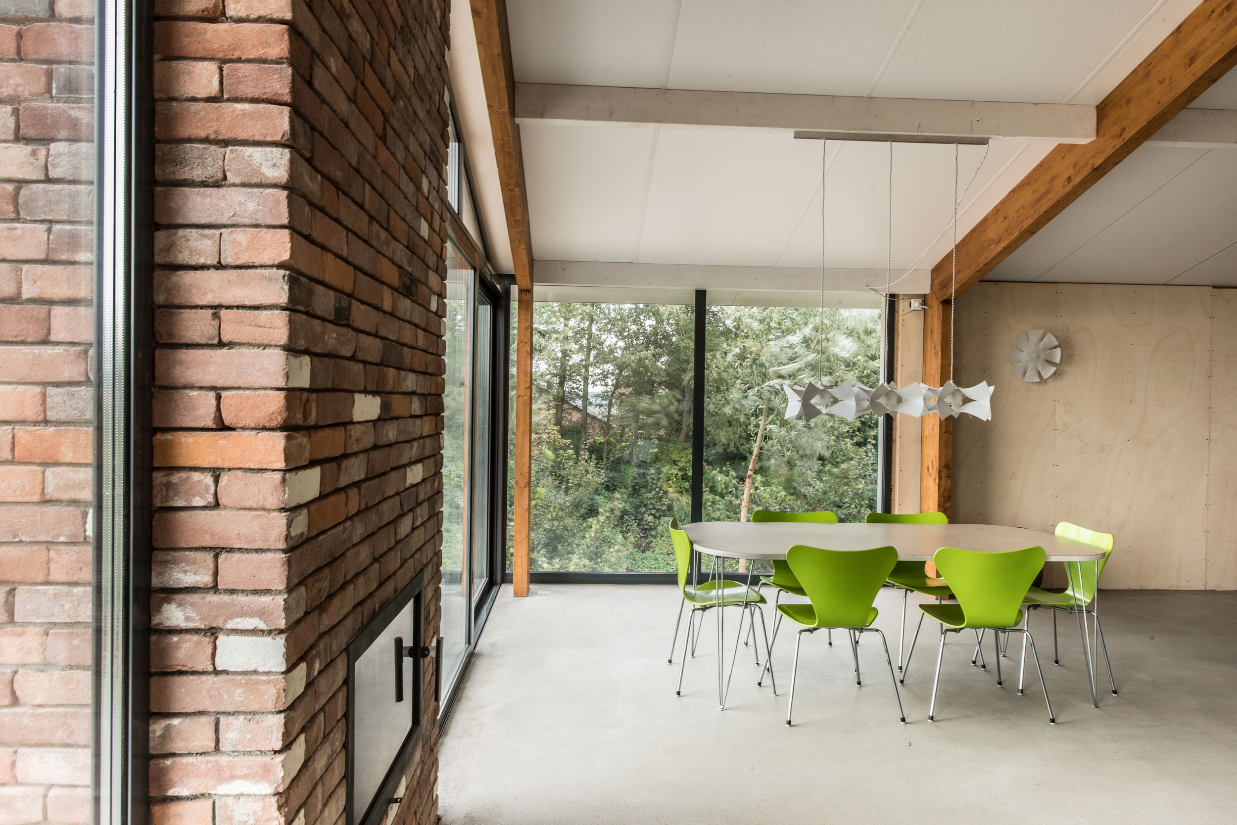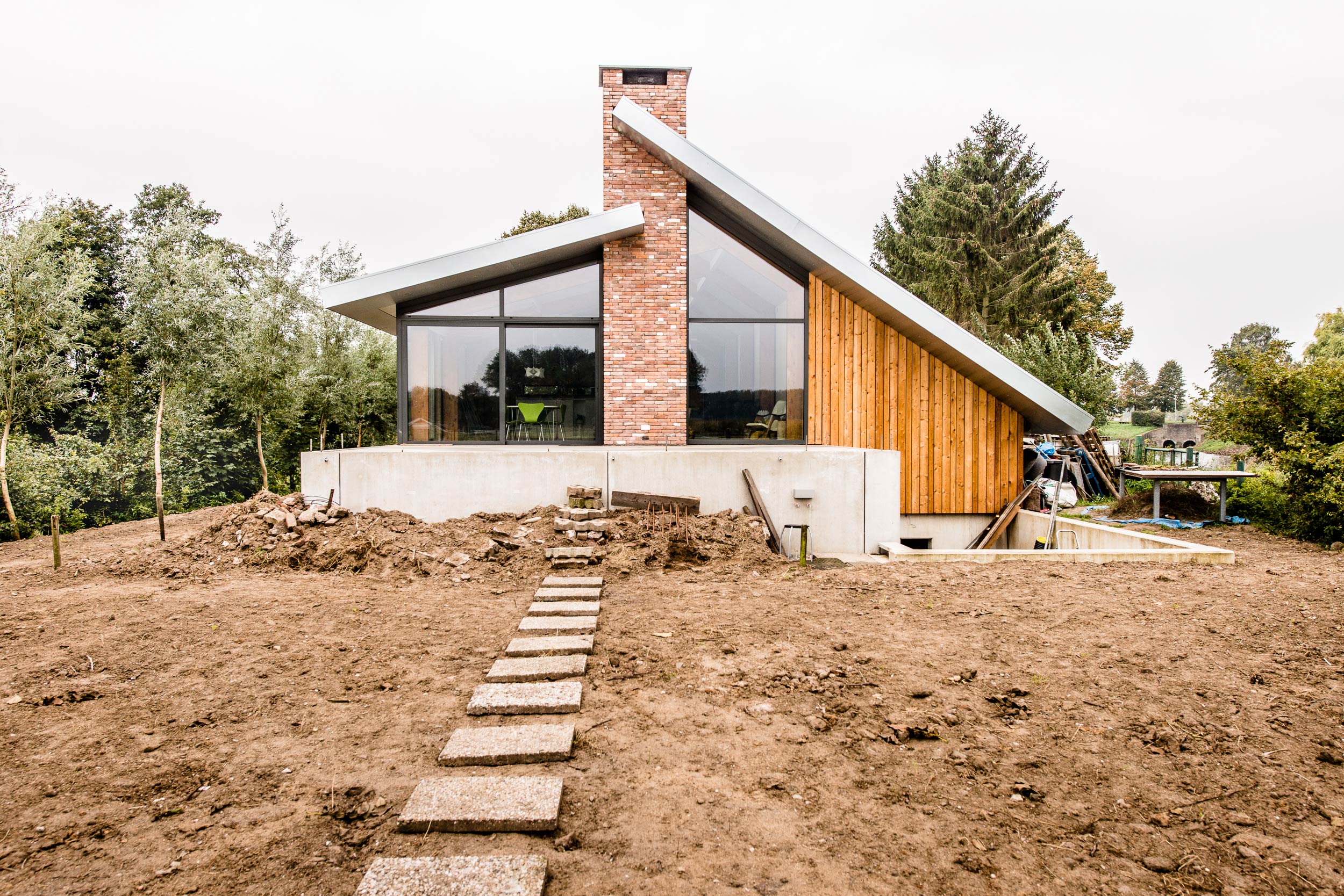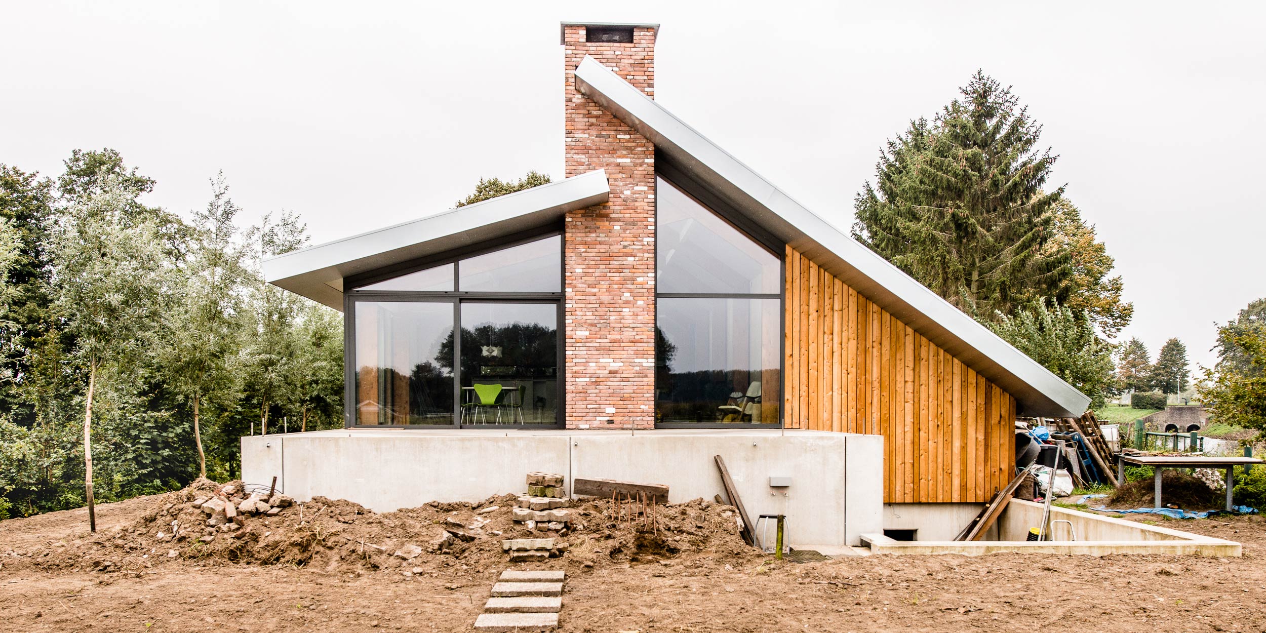 Bedoeling is om de woning uit te voeren in houtskeletbouw in combinatie met een bakstenen buitenblad. De bekleding van het uitgebouwde deel aan de noordzijde is uit aluminium golfplaat. Het lessenaarsdak aan de zuidzijde wordt voorzien van geïntegreerde zonnepanelen, aan de de noordzijde wordt het lessenaarsdak afgewerkt als groendak.