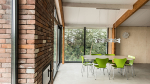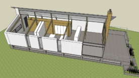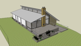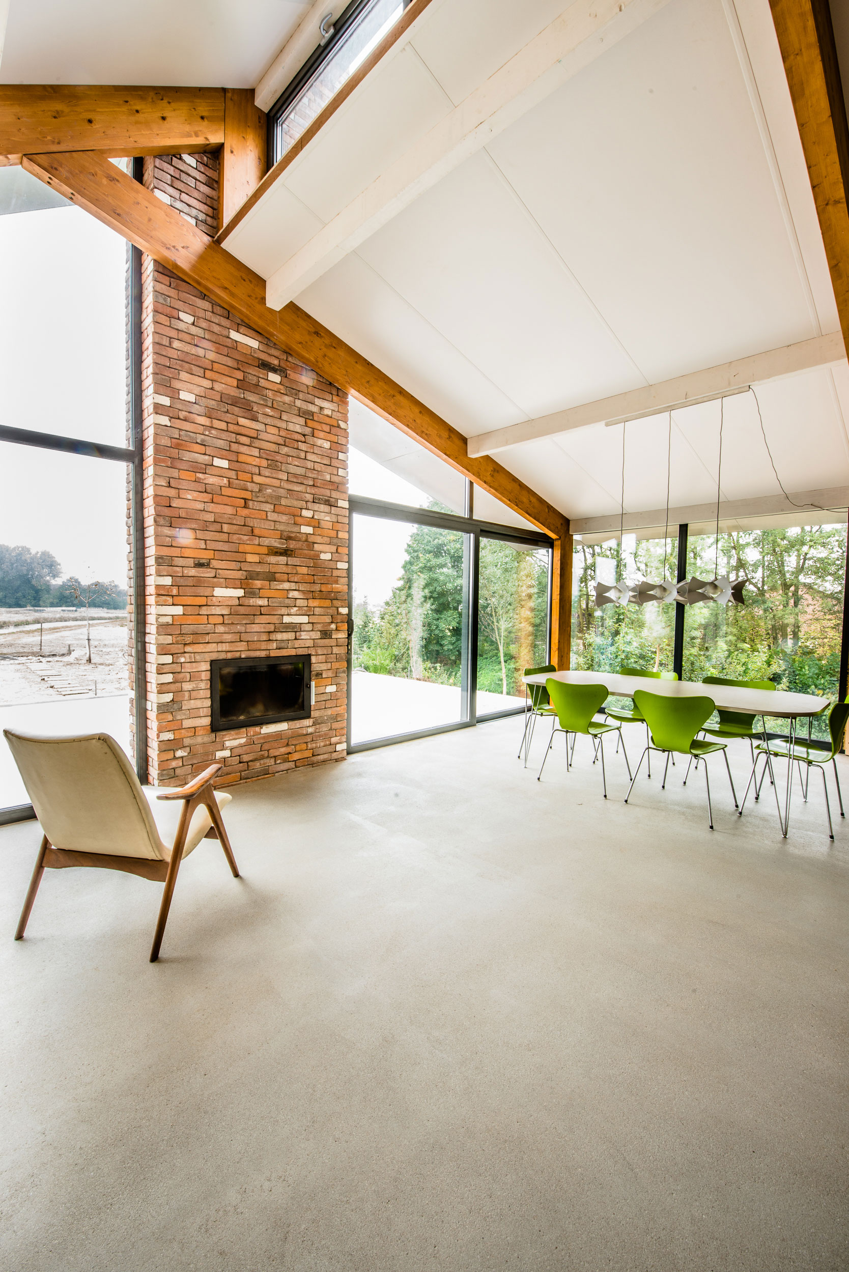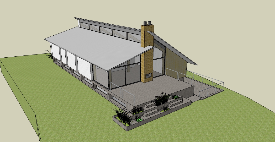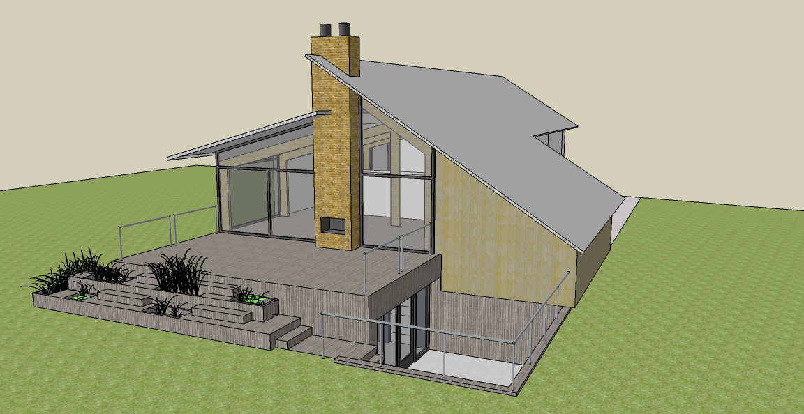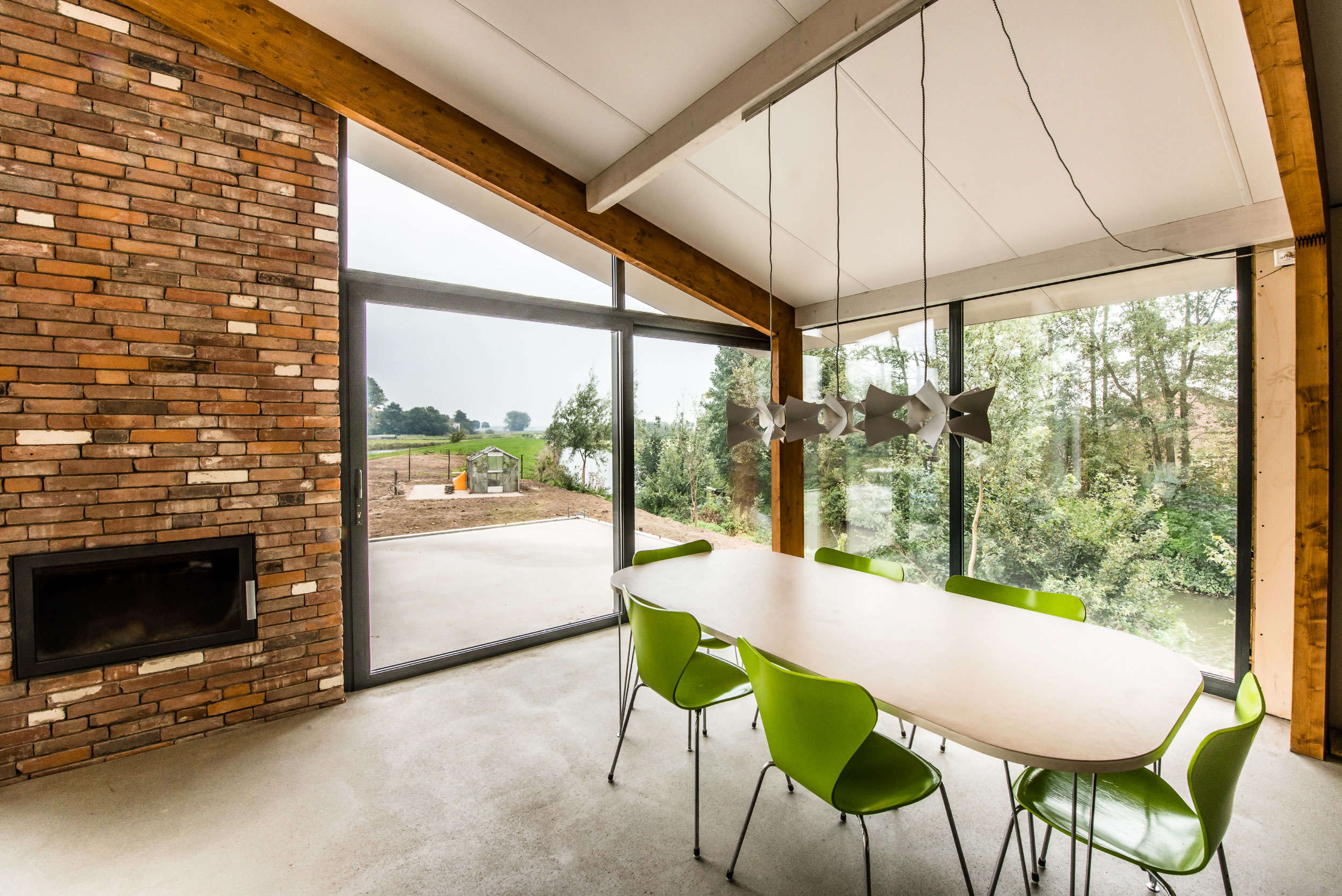 Bedoeling is om de woning uit te voeren in houtskeletbouw in combinatie met een bakstenen buitenblad. De bekleding van het uitgebouwde deel aan de noordzijde is uit aluminium golfplaat. Het lessenaarsdak aan de zuidzijde wordt voorzien van geïntegreerde zonnepanelen, aan de de noordzijde wordt het lessenaarsdak afgewerkt als groendak.