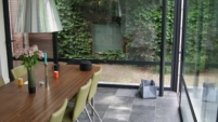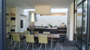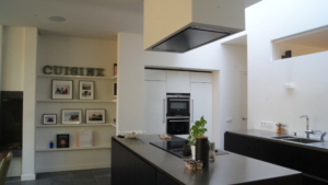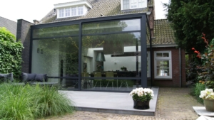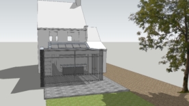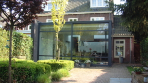 Het ontwerp bestaat uit een uitbreiding aan de achterzijde van de woning met de functie tuinkamer en keuken. Deze uitbreiding is vormgegeven in een moderne hedendaagse stijl en vorm een sterk contrastde oorspronkelijk stijl van de hoofdbebouwing. Het eindresultaat is een harmonieus evenwicht herkenbaar enerzijds op basis van de specifieke kwaliteit van het bestaande en anderzijds de eigentijdse schoonheid van het nieuwe.